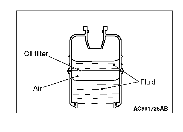 ^ Keep the fluid level above the oil filter while air. bleeding. If you fail to do so, an "air layer" will be present below the oil filter. This can cause the fluid not to be added below the oil filter.