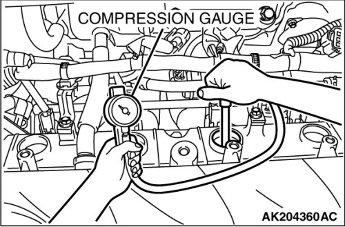 7. Crank the engine with the throttle valve fully open and measure the compression pressure.