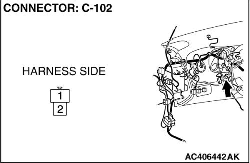STEP 3. Check air thermo sensor connector C-102 for loose, corroded or damaged terminals, or terminals pushed back in the connector.