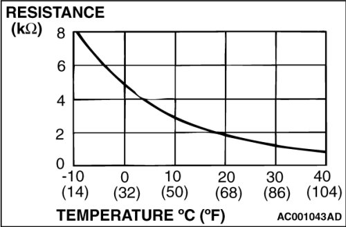 (2)Measure the resistance between connector terminals 1 and 2 under at least two different temperatures. The resistance values should generally match those in the graph.