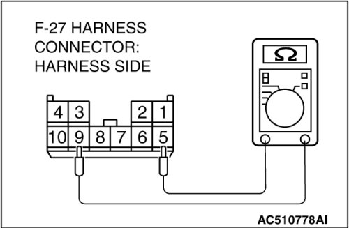 (1)Disconnect convertible top control module connector F-27, and measure at the wiring harness side.