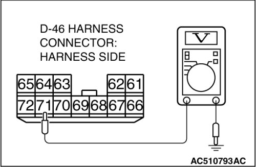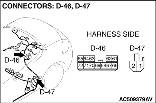 (1)Disconnect convertible top control module connector D-46, and measure at the wiring harness side.