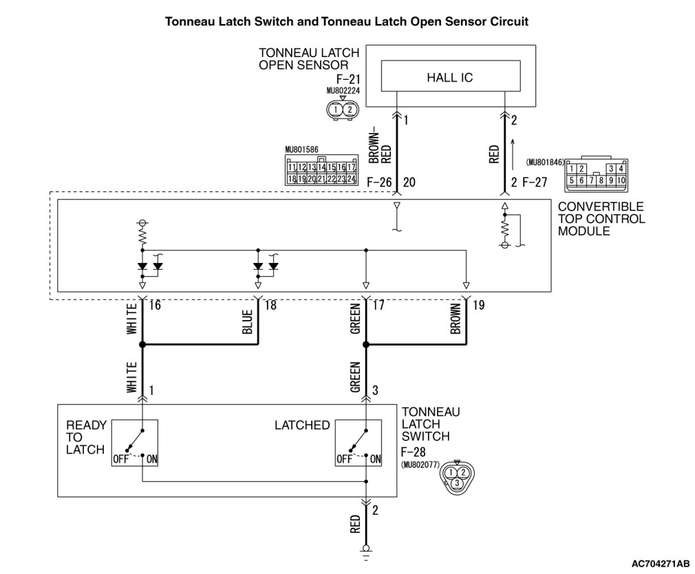 - Check the tonneau latch open sensor power supply lines and signal lines for open or short circuit.
