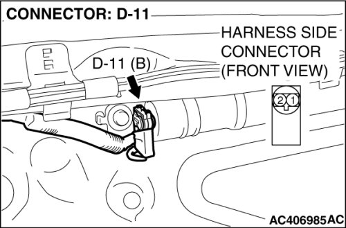 (4)Connect special tool MB991884 to the D-11 harness side connector.