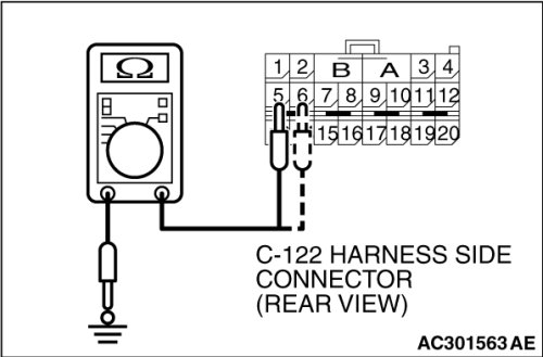 Check for continuity C-122 harness side connector terminals 5, 6 and body ground.