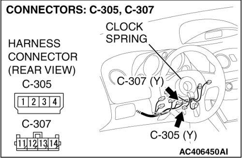 (2)Disconnect the clock spring connector C-307.