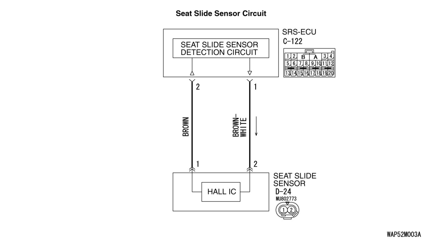 - The SRS-ECU determines the seat position according to the current value from the seat slide sensor.