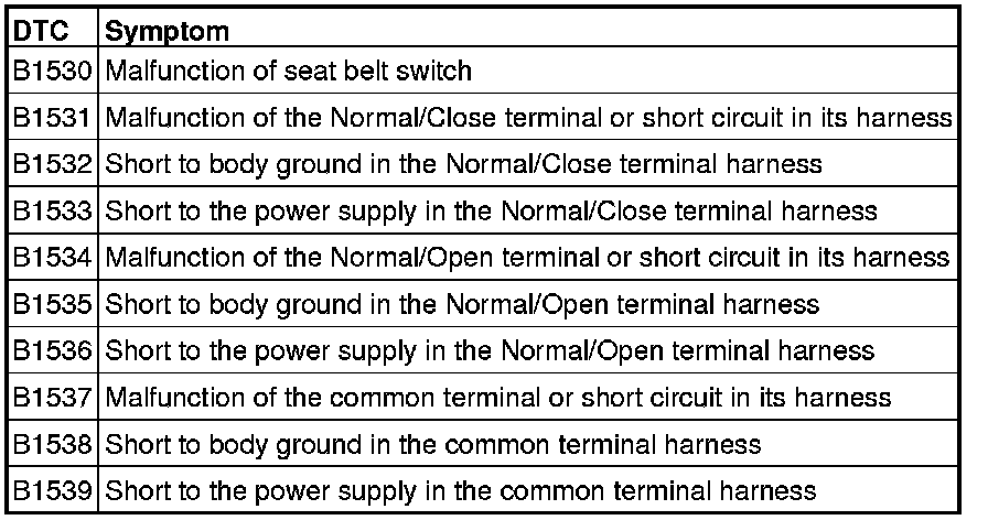 DTC B1530: Seat belt switch (RH) malfunction