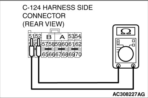 (2)Disconnect SRS-ECU connector C-124 and measure at the harness side (rear side).