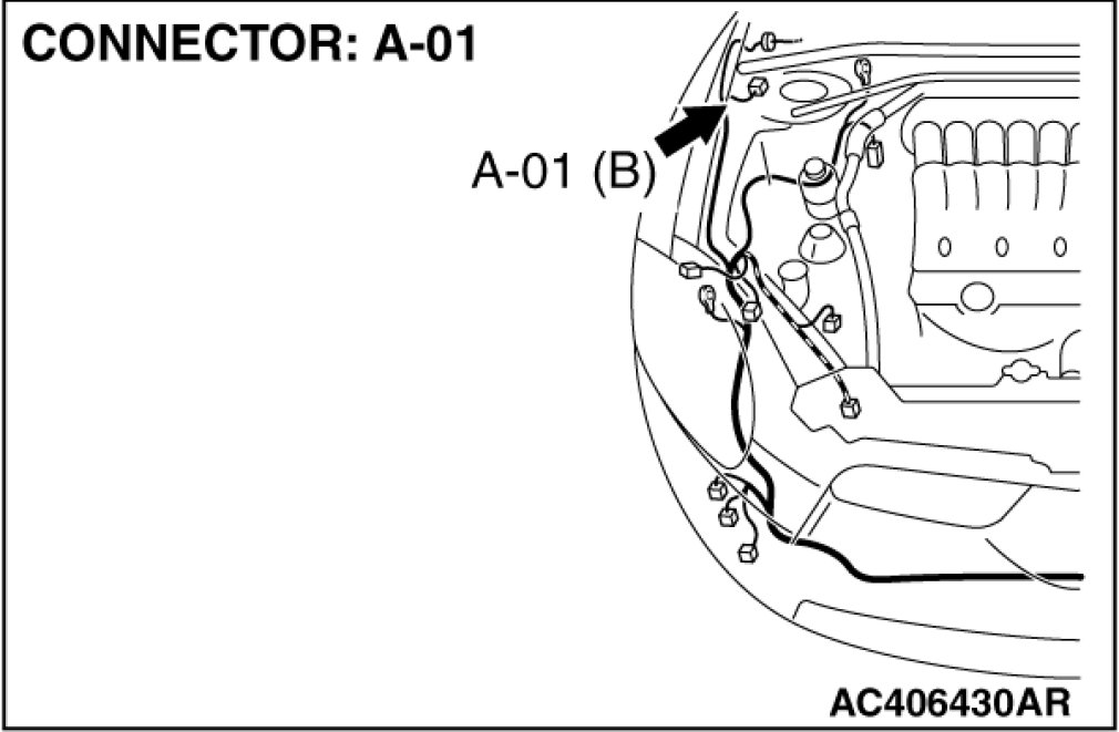 STEP 12. Check TCL/ASC-ECU connector A-38 and wheel speed sensor [front: RH] connector A-01 for loose, corroded or damaged terminals, or terminals pushed back in the connector.