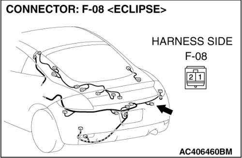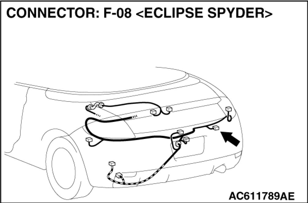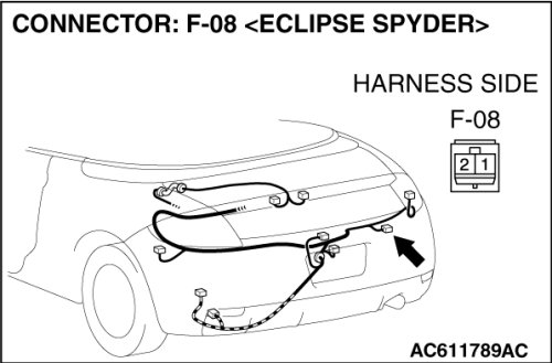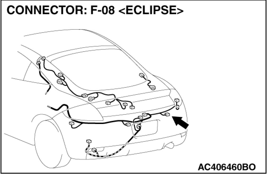 STEP 12. Check TCL/ASC-ECU connector A-38, intermediate connector C-26 and wheel speed sensor [rear: RH] connector F-08 for loose, corroded or damaged terminals, or terminals pushed back in the connector.
