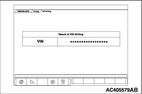 11. When the VIN writing completion menu is displayed, press the OK button.