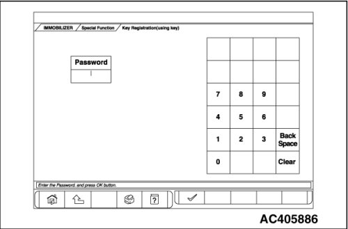 9. Enter the password of the vehicle, and press the OK button.