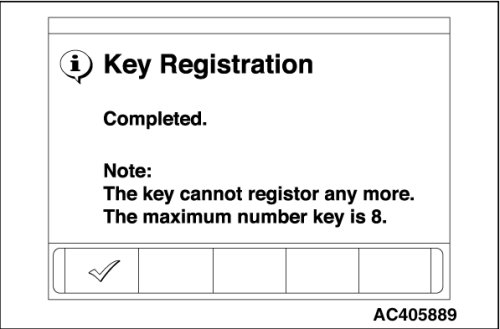 12. A maximum of eight ignition keys can be registered. When the registration of the eighth ignition key is finished, key registration completion menu is displayed. Press the OK button and finish the ignition key registration.