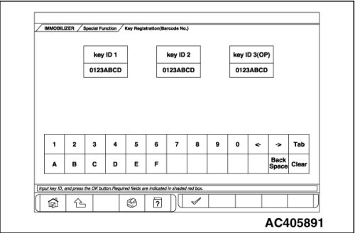 10. Enter the ID on the bar code plate which is attached to the ignition key, and press the OK button.