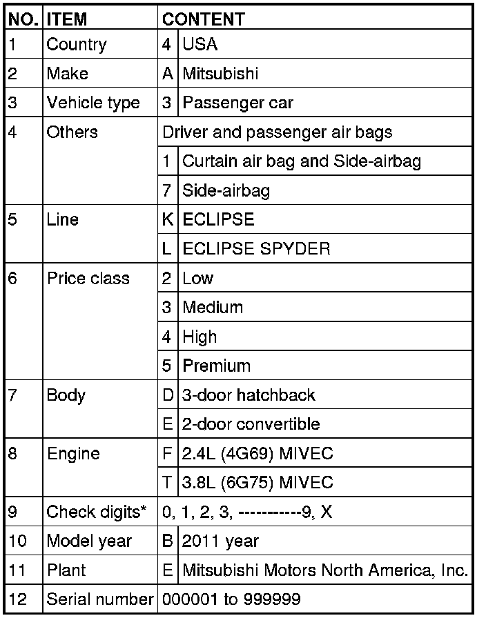 *: Check digit means a single number, or letter X, used to verify the accuracy of transcription of vehicle identification number.