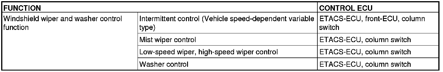 ETACS-ECU uses the dial position of the variable intermittent wiper control switch and the vehicle speed signal sent by the combination meter to calculate the interval to be sent to the front-ECU.