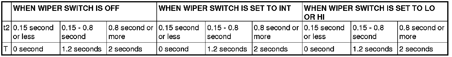 The wiper drive signal output time varies according to the conditions. Refer to the following table for details.