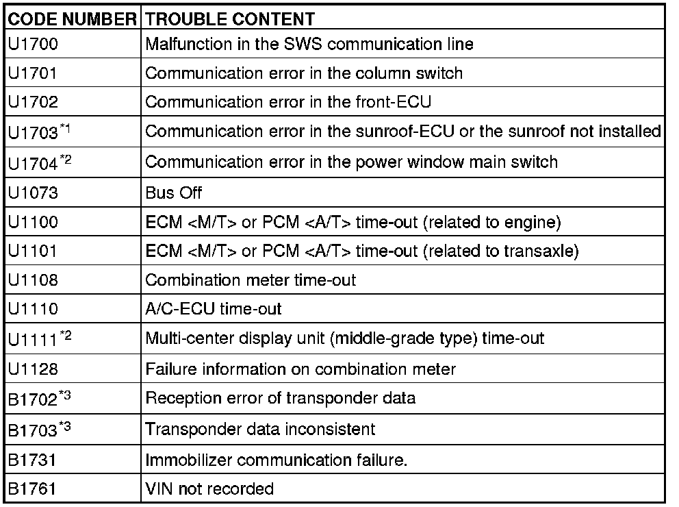 *1: For vehicles that do not have a sunroof, the diagnosis code is always sent but it does not indicate a problem.