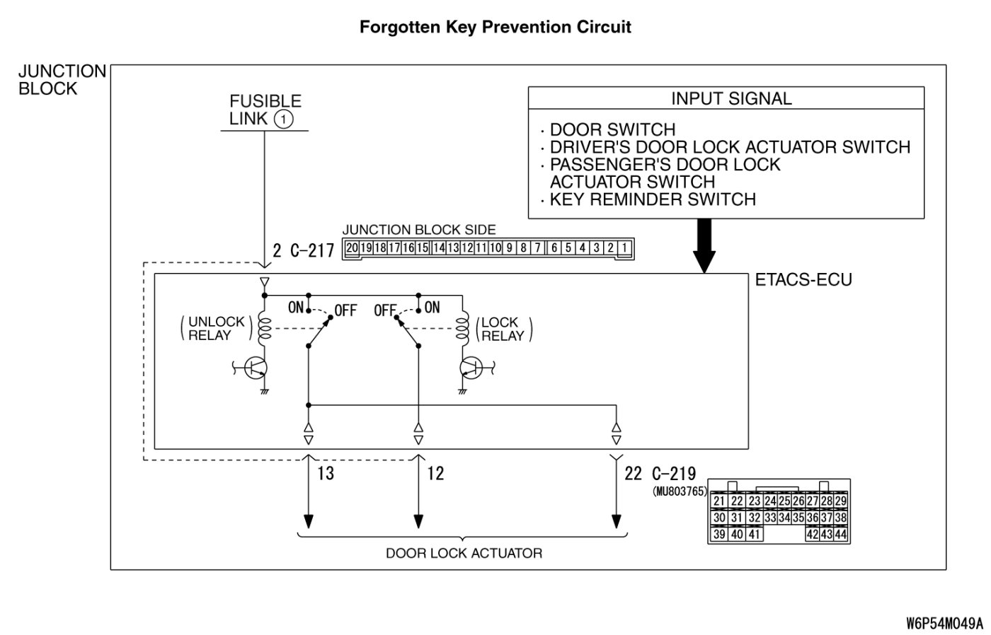 If the function does not work normally, the input circuit system from the switches or the ETACS-ECU may be defective (refer to "CIRCUIT OPERATION").