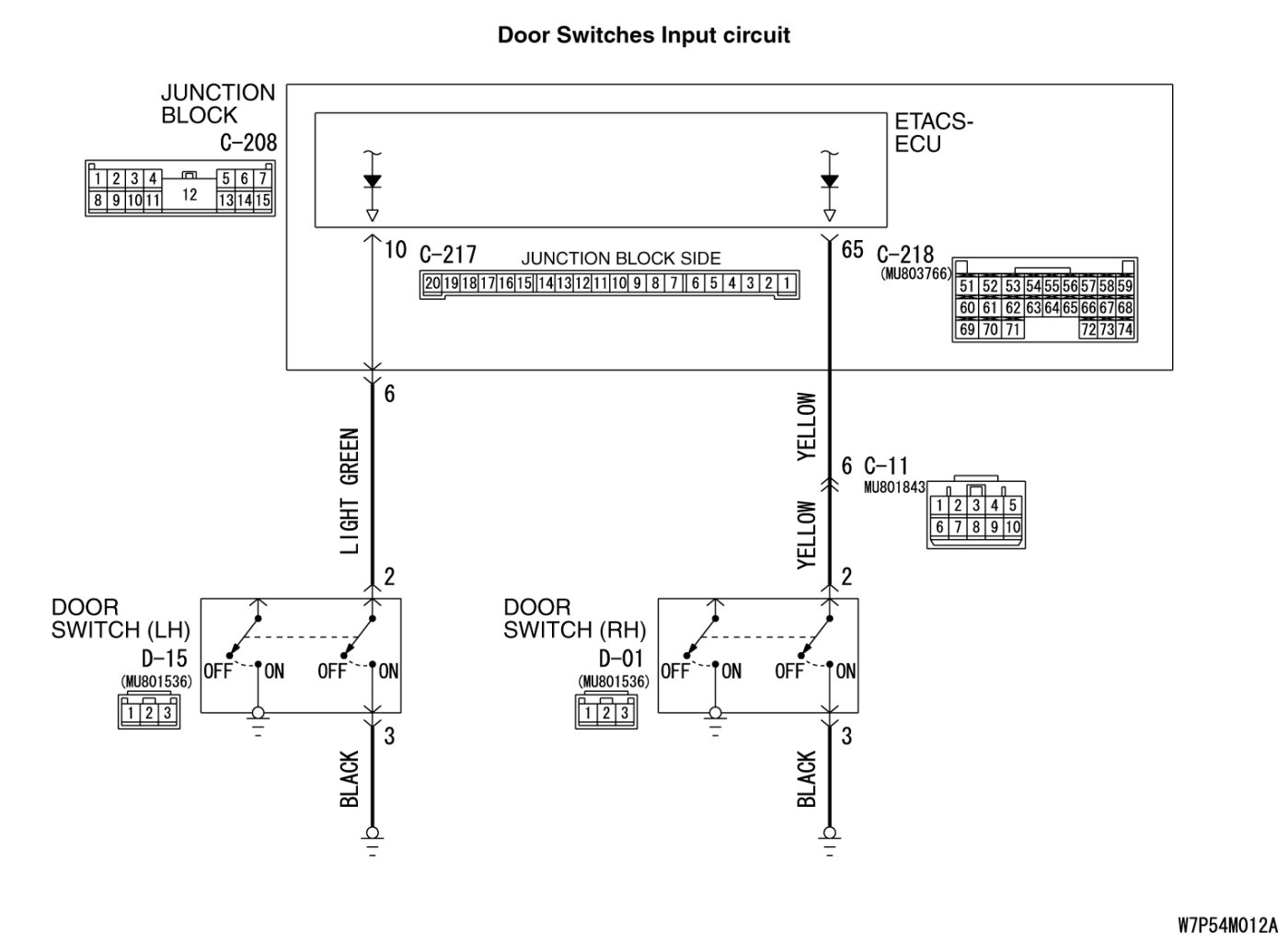 When either door is opened and closed, scan tool MB991958 sounds. : Replace the ETACS-ECU. When the ETACS-ECU is replaced, register the encrypted code. Immobilizer System. If the functions described in "CIRCUIT OPERATION" work normally, the input signal from the door switches should be normal.