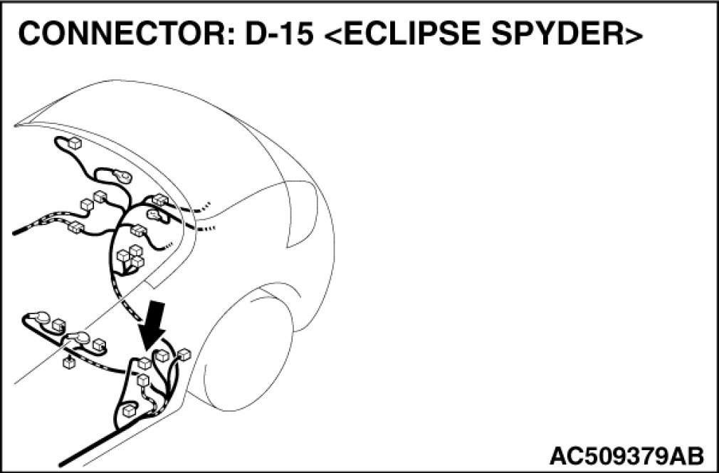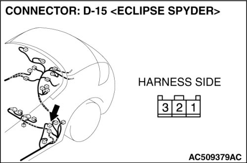 STEP 2. Check door switch (LH) connector D-15 for loose, corroded or damaged terminals, or terminals pushed back in the connector.