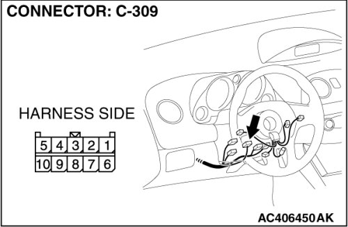STEP 1. Check column switch connector C-309 for loose, corroded or damaged terminals, or terminals pushed back in the connector.