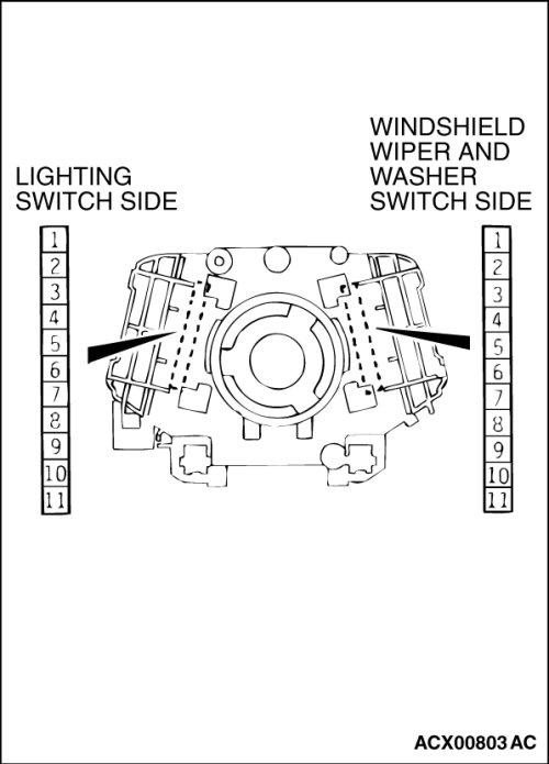 (1)Remove the windshield wiper and washer switch, and check at the switch side.