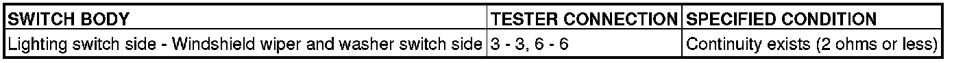 Remove the turn-signal light and lighting switch and windshield wiper and washer switch. Then check continuity between the switch body terminals.