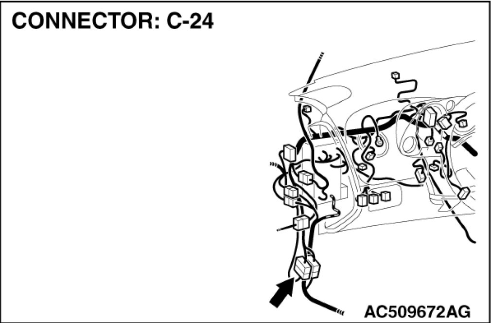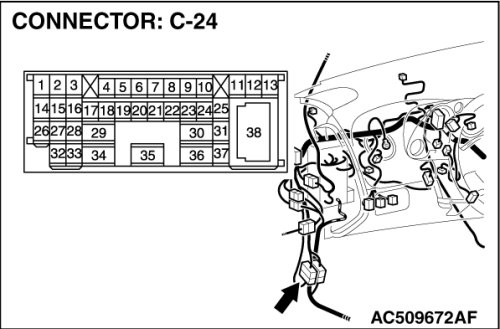 Also check intermediate connector C-24 for loose, corroded, or damaged terminals, or terminals pushed back in the connector. If intermediate connector C-24 is damaged, Repair or replace the damaged component(s) as described in Harness Connector Inspection Harness Connector Inspection.