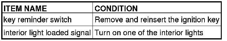 Normal condition is not displayed for "FRONT DOOR SW" : Refer to Inspection Procedure M-5 "ETACS-ECU does not receive any signal from the door switches Inspection Procedure M-5."