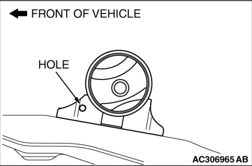 Install the engine front roll stopper bracket so that its hole points towards the front side of the vehicle.