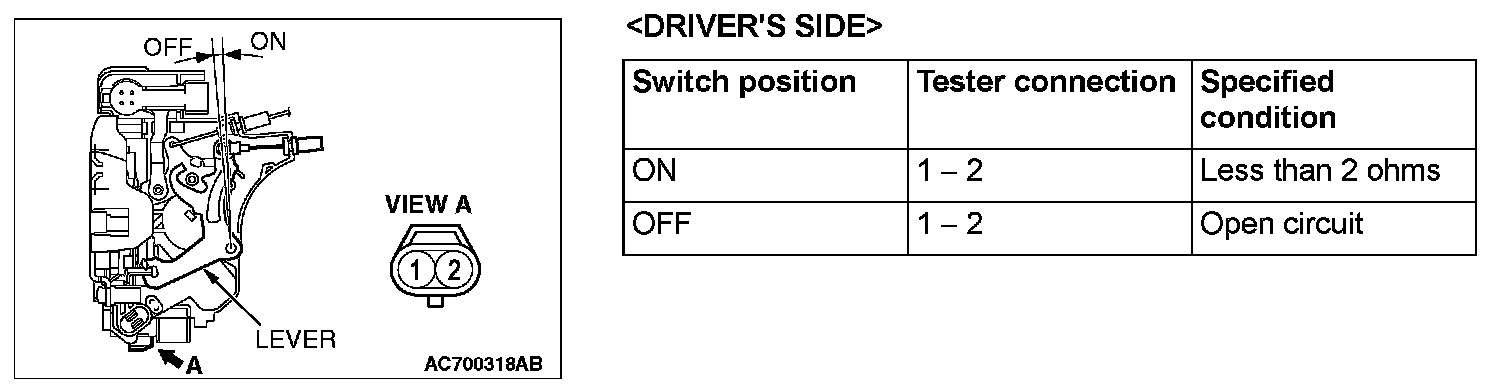 The illustration shows when the short stroke switch is viewed from inside the door.
