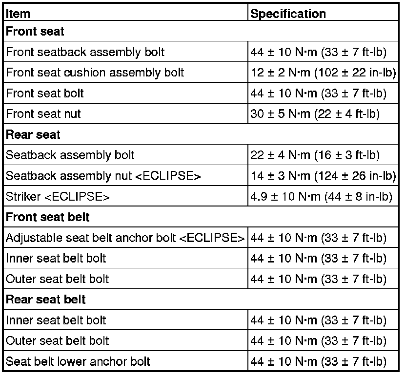 Seats: Specifications