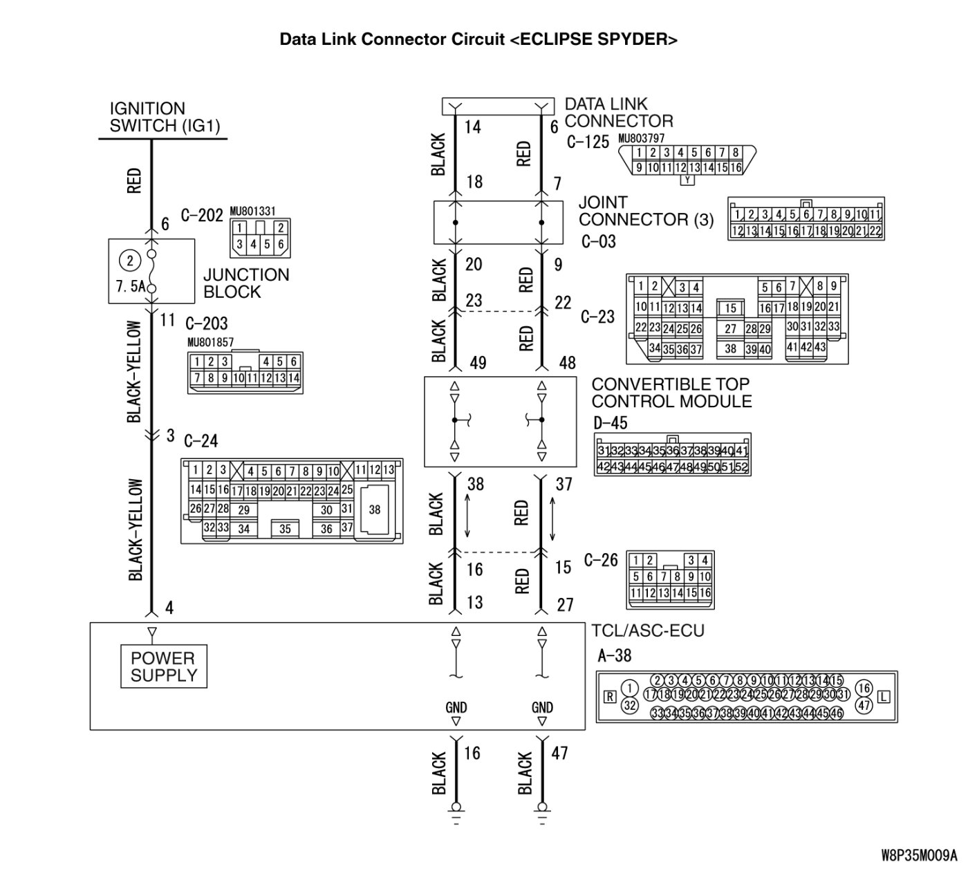 If the scan tool (M.U.T.-III Sub Assembly) can not communicate with the ABS system, the CAN bus lines may be defective. If the ABS system does not work, the TCL/ASC-ECU or its power supply circuit may be defective.