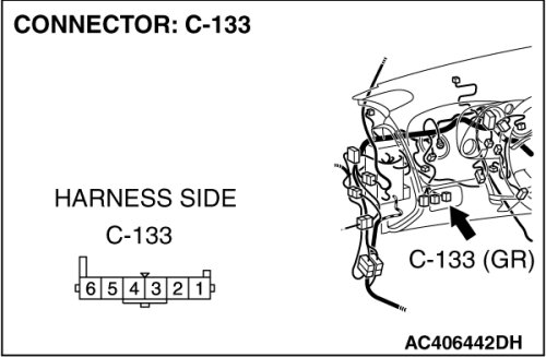 STEP 5. Check the harness wire between ASC OFF switch connector C-133 terminal 2 and ground for open circuit.