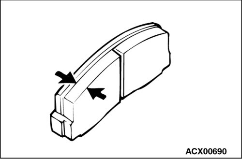 2. Replace the pad assembly if pad thickness is less than the limit value.