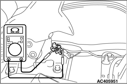 2. Check for continuity between the parking brake switch terminal and the switch mounting bolt.