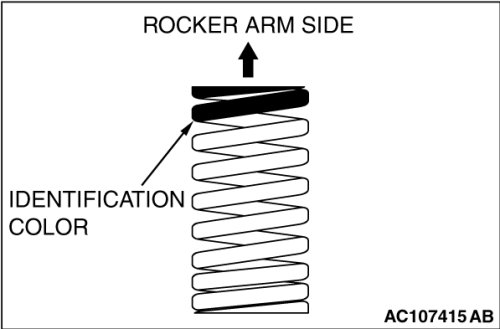 Install the valve spring with its identification color painted end facing the rocker arm.