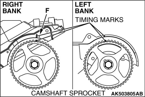 Rotate crankshaft clockwise and then align the timing mark on the camshaft sprocket with the timing mark on the rocker cover. (Place Number 1 cylinder on the top dead center of compression stroke.)