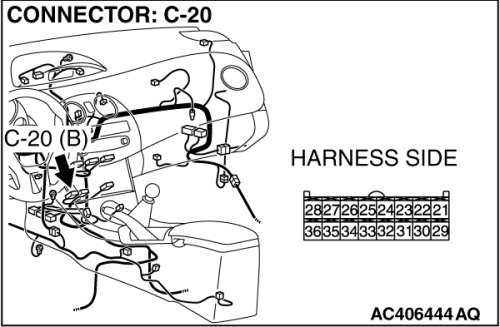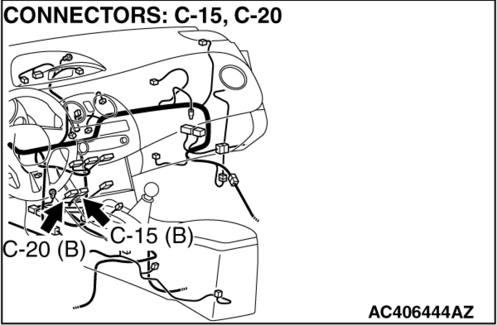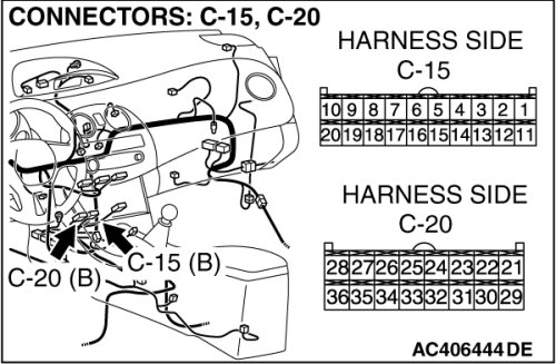 STEP 5. Check A/C-ECU C-15 and C-20 for loose, corroded or damaged terminals, or terminals pushed back in the connector.