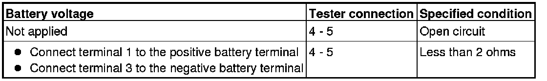 When battery voltage is applied between the terminals, check that the motor operates. Also, check that there is no abnormal noise.