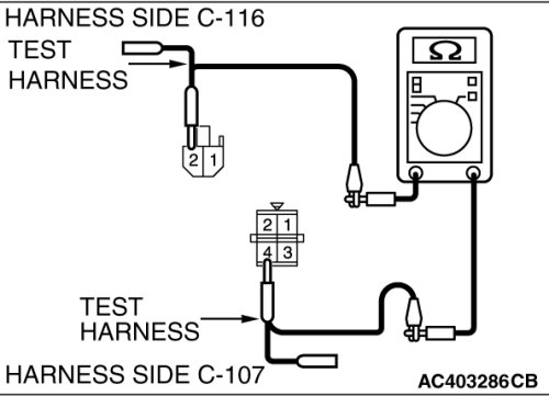 STEP 9. Check the wiring harness between blower motor connector C-116 (terminal 2) and power transistor connector C-107 (terminal 4).