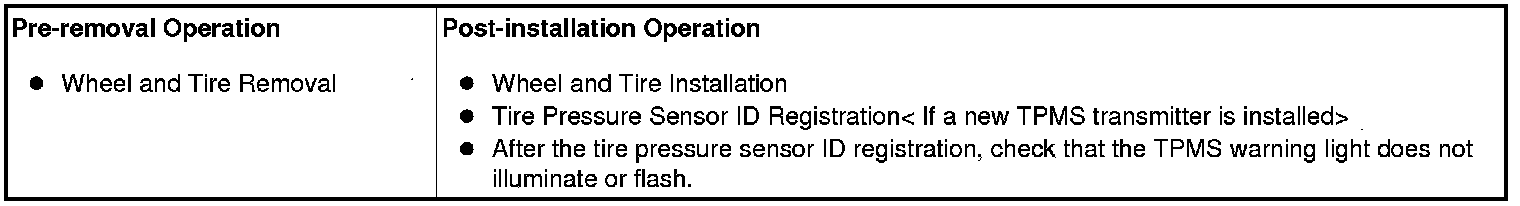 - If the TPMS transmitter is replaced, execute "Tire Pressure Sensor ID Registration" on scan tool MB991958 "Special Function."