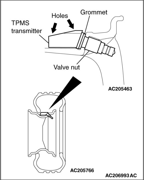 - Replace the valve stem grommet with a new one every five years or when the tire is replaced. Each TPMS transmitter have the corresponding grommet, so you must use them with correct combination.