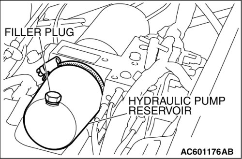 2. Remove the filler plug to the hydraulic pump reservoir.