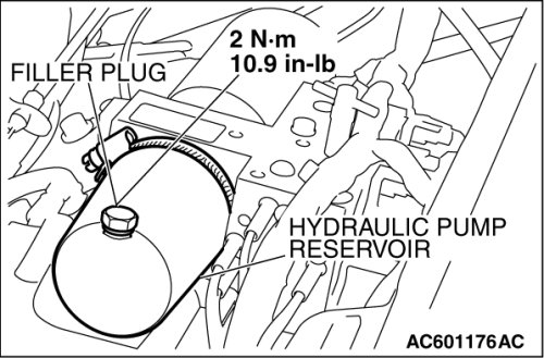 5. Install the filler plug to the hydraulic pump reservoir.