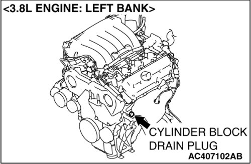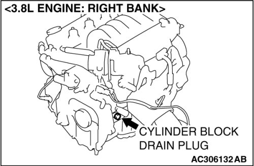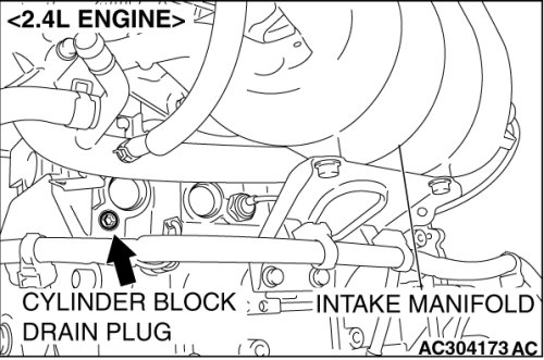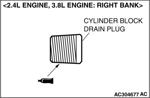 2. Drain the water in the water jacket by unplugging the drain plug of the cylinder block.