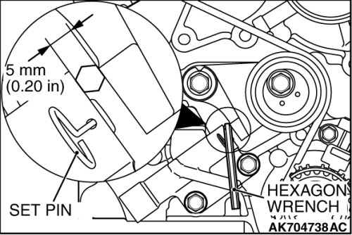 4. Insert the hexagonal wrench having the width of 5 mm (0.20 inch) between the auto-tensioner and tensioner arm.