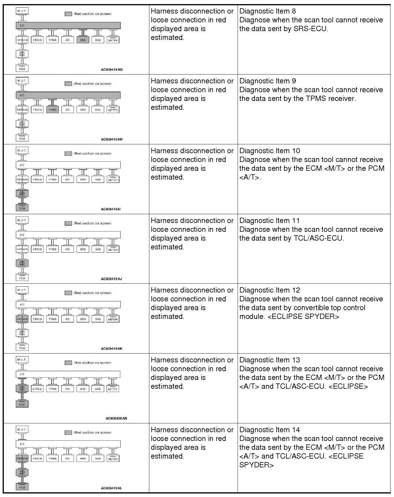 If the screen other than above is displayed, troubles are present at two or more spots. In this case, diagnose CAN bus lines by referring to the trouble spot pinpoint procedures.
